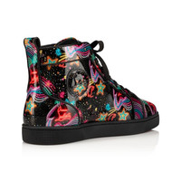 An iconic Maison Christian Louboutin model, the Louis high-top sneaker is part of the Viva Las Vegas collection. Crafted entirely in multicolored Starlight print patent calf leather, it pays homage to the neon hotel lights in this legendary city. With laces on the upper and a heel tab at the back, this model with a contrasting sole is both elegant and sporty. PRODUCT INFORMATION Reference: 1230465M024 Color: MULTI Material: Patent leather Collection: Summer 23