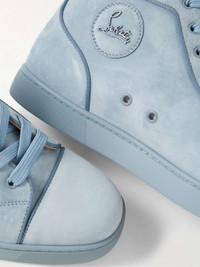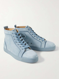 Christian Louboutin's 'Louis Orlato' sneakers are a sleek, understated version of the retro high-tops they're inspired by. Set on signature red rubber soles, they've been made in Italy from sky-blue suede and have matching grosgrain trims, laces and hardware. Size & Fit - Fits true to size. Take your normal size - European sizing Details & Care - Sky-blue suede (Calf) - Lace-up - Designer colour: Zinc - Come with a dust bag and spare laces - Style number: 3161213