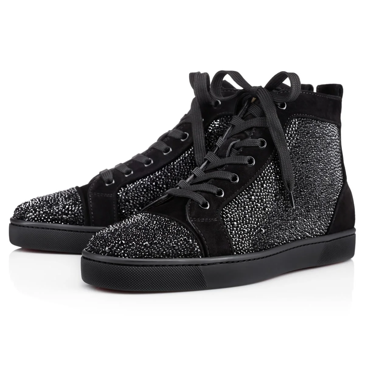 The iconic Louis hi-top sneaker is inspired by the basketball sneakers of the 1980s with classic lines and a retro-feel. Each season this cult-like style is dressed in new materials and colours, from timeless offerings to daring modern looks. This model is crafted in all-over soft Black Veau Velours and expertly embellished with a myriad of sparkling strass that catch the light. Product information Material: Strass Color: Black Reference: 3100592BK01 Collection: Fall Winter 14