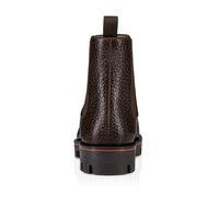 The timeless Alpinosol ankle boot is inspired by the mountains. This urban Maison Christian Louboutin model sits on a black rubber lug sole outlined with a Loubi red stripe. The upper is crafted in textured, grained Corteccia brown calf leather and features elastic and a heel tab making it easy to slip on. Product information Reference: 3240875C135 Color: Corteccia Material: Calf leather