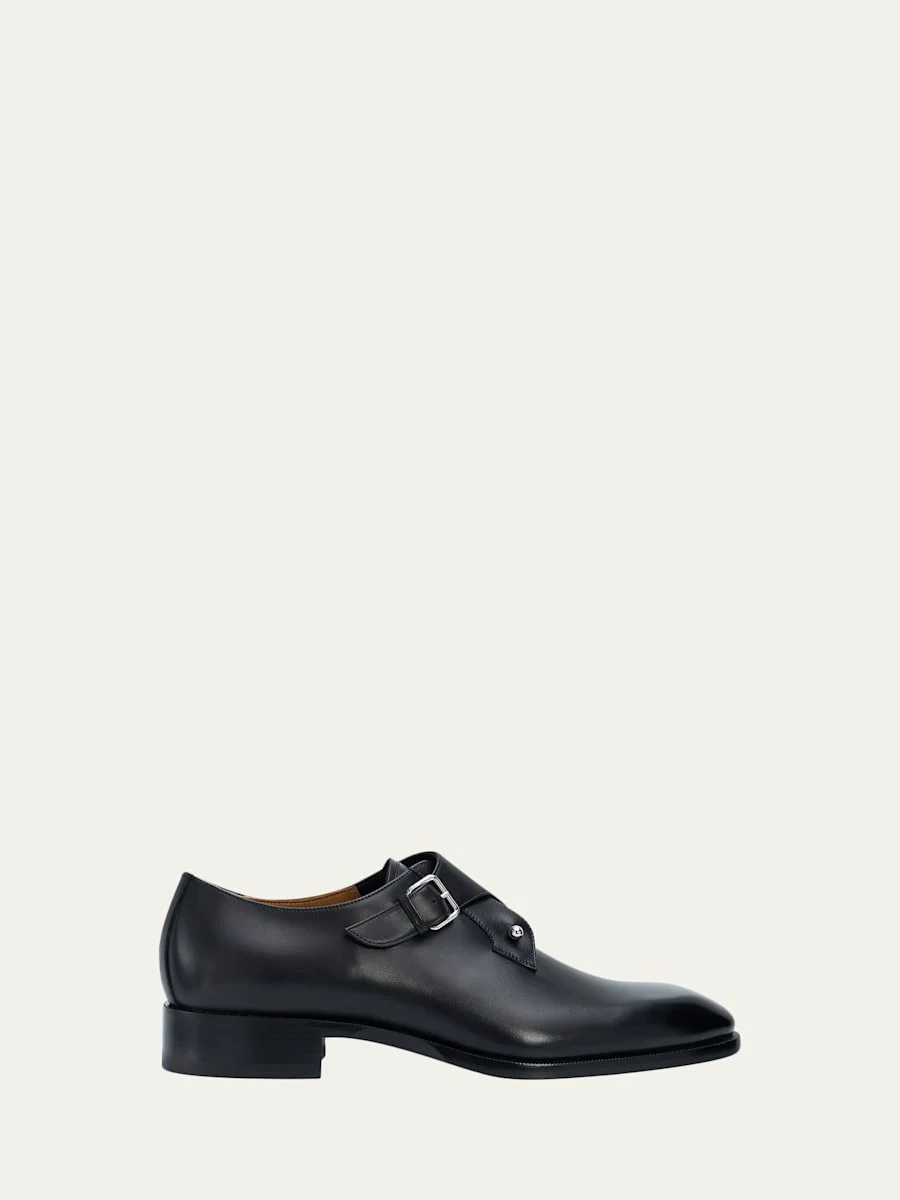 Christian Louboutin loafers in smooth calfskin leather Stacked heel Almond toe Crisscross monk strap at vamp Leather outsole Lining: Leather Made in Italy Online Inquiries: BGS21_NCFX2| Store Inquiries: #4877011