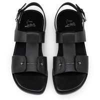 The Chambeliss Sandal Strass features a sleek silhouette. A refined shoe entirely crafted from black calf leather. A testament to the creativity of Maison Christian Louboutin, it features a wide band adorned with a metal piercing and an ankle strap with a metal clasp. This sophisticated model has a padded insole. Product information Reference: 1250686BK01 Color: Black Material: Calf leather