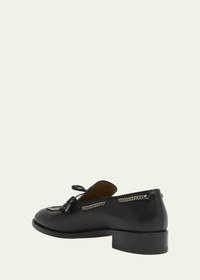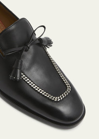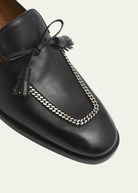 Christian Louboutin "Cortochain" tassel loafers in leather Features 360-degree chain hardware Stacked heel Apron toe Tassel bow vamp Signature Louboutin red leather outsole Slip-on style Made in Italy Online Inquiries: BGS21_NC3B3| Store Inquiries: #4796551
