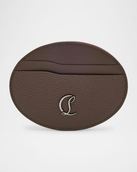 - Christian Louboutin oval-shaped card holder in smooth and grained calf leather - Mooncrest monogram on the front - Embossed signature on the back - Signature Loubi red interior - Four card slots - One central compartment - Approx. 3.5"H x 4.7"W x 0.2"D - Made in Italy