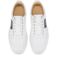The retro-style Retero sneaker stands out thanks to its striking finishing touches. Set on a rubber sole, this white version is made from canvas and grained calf leather and features a supple contruction. It has a heel tab and a contrasting Maison Christian Louboutin signature on a Marine blue band on the side. Product information Reference: 32502046902 Color: Marine Material: Grained calf leather