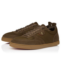 Maison Christian Louboutin's Tutti Rui flat sneaker offers an elegant outline that elevates any outfit. Crafted in supple reversed calf leather in Silex brown, the textured contrasting fabric on the upper is enhanced by the iconic CL signature logo set on a tab offering a glimpse of Loubi red. Features a practical heel tab. Product information Reference: 3250271E448 Color: Silex Material: Calf leather and nylon