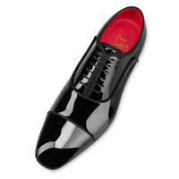 The Met Greggo shoe features a gold heel echoing the architecture of Athenian columns. Crafted in black patent leather with Loubi red lining, it has an exquisite finish with a grosgrain ribbon trim showcasing Maison Christian Louboutin's exquisite expertise. This model features a tapered toe and lacing on the upper enhancing its sophisticated, urban appeal. Product information Material: Patent calf leather Color: Black Reference: 1230535J323 Collection: Summer 23