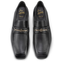 The men's MJ Moc loafer is crafted in black calf leather, and features a design using sacchetto assembly. This pair has a shiny finish soft leather with a flexible supple sole, feeling like a second skin. Sacchetto is a complex technique of assembly, made by special artisans, assures a maximum supple feel to the loafer. This Maison Christian Louboutin model has a square toe. Its sophisticated lines are enhanced with top stitching and a gold chain on the upper showcases a CL monogram. Product information Material: Calf leather Color: Black Reference: 1240339BK01 Collection: Summer 24