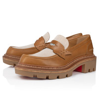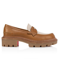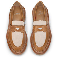 Inspired by the urban lines of the Penny Loafer, the Moc College loafer for men is crafted from waxed Terra brown calf leather and brown Granariso canvas. Enhanced by a discreet finish, this refined Maison Christian Louboutin model is set on a notched sole. The tongue features a band with a slot wide enough to accommodate a coin. Product information Reference: 12506407122 Color: Terra Material: Waxed calf leather