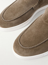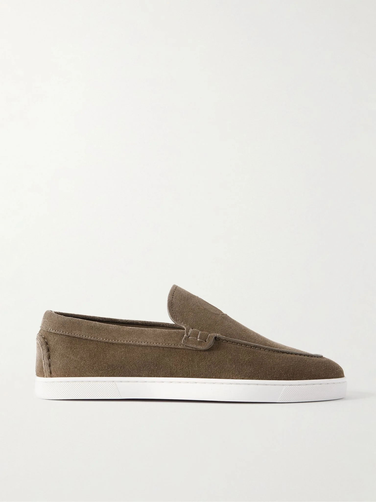 Christian Louboutin's 'Moonboat' loafers team perfectly with jeans and summer suits alike. They're made from suede, discreetly embossed with the logo and have gripped rubber soles with signature red bottoms. Size & Fit - Fits true to size. Take your normal size - Only available in full sizes, go up to the nearest whole size if you take a half size - European sizing Details & Care - Taupe suede (Calf)