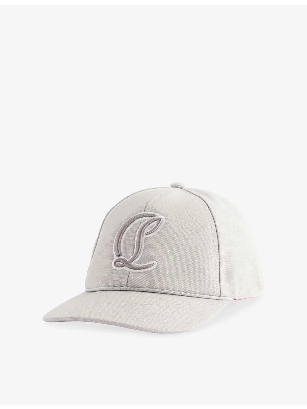 PRODUCT DETAILS - Christian Louboutin cotton-canvas baseball cap - 75% cotton, 25% calf leather - Adjustable buckle fastening at back - Six-panel design, curved visor, tonal logo embroidery at front, adjustable strap at back, interior ribbon - Hand wash Ref: R04602949