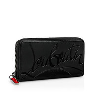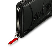 The elegant Maison Christian Louboutin Panettone wallet is crafted in black calf leather, highlighting the initials CL. A sophisticated, urban accessory with sleek lines that's ideal as part of a women's wardrobe. - 12 card slots, 4 flat pockets, 1 zipped pocket for coins and 2 note pockets - Spacious zipped compartment lined with Loubi red - Dimensions: H 110 x L 195 x W 25 mm Product information Material: Calf leather Color: Black Reference: 3195051CM53 Dimensions: 4.3 x 7.7 x 1 inches Lining: Grosgrain Collection: Fall Winter 23
