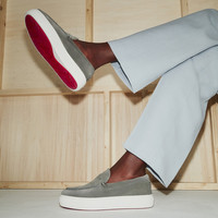 Maison Christian Louboutin’s Paqueboat sneaker combines the traditional lines of a loafer with the relaxed look of a boat shoe. It has a wide rubber sole and rounded toe. A Christian Louboutin signature adorns the heel. Meticulous topstitching outlines the various sections of the shoe, and the tongue has a loafer-saddle detail. This model is crafted in soft Smoke grey calf leather for a sophisticated look. Product information Material: Calf leather Color: Grey Reference: 3201139GYB5 Collection: Summer 24