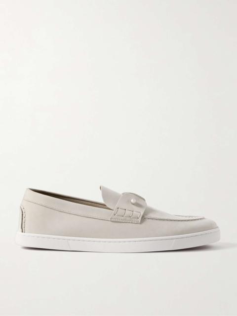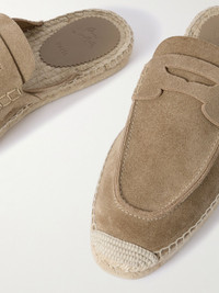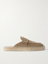 Christian Louboutin's 'Paquepapa' slip-ons combine the ease of espadrilles with the sophisticated look of traditional penny loafers. They've been made in Italy from soft suede and feature signature, logo-debossed red rubber soles. Wear yours with chino shorts or relaxed tailoring. Size & Fit - Fits true to size. Take your normal size - Only available in full sizes, go up to the nearest whole size if you take a half size - European sizing Details & Care - Sand suede (Calf)