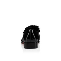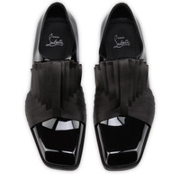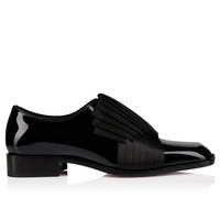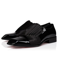 A sleek slip-on, the Rahul adds a bold aesthetic to city attire. Crafted from black patent calf leather and featuring a crepe satin pleated embellishment on the vamp, this model flaunts iconic Maison Christian Louboutin sophistication. A modern square toe and hidden elastic for easy slip-on complete the detail. Product information Reference: 1260485BK01 Color: Black Material: Patent calf leather and crepe satin