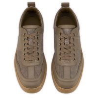 The Retero is an elegant low-top sneaker set on a white rubber sole. It features sporty lines and is entirely crafted from Silex grey calf leather and Crosta leather with a canva-printed pattern. This model features a heel tab and the emblematic Maison Christian Louboutin signature on the side. It also has a more flexible construction. Product information Reference: 1260684E448 Color: Silex Material: Calf leather and canva