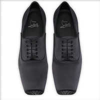 The Maison Christian Louboutin Ruben lace-up features a distinctive crumpled square toe that is reminiscent of the elegance of the world of ballet, while a sleek profile is a nod to the grace of a dancer. Crafted in black crepe satin with a lightweight Loubi red sole, this model is a true reflection of self-expression. Product information Reference: 1260537BK01 Color: Black Material: Crepe satin