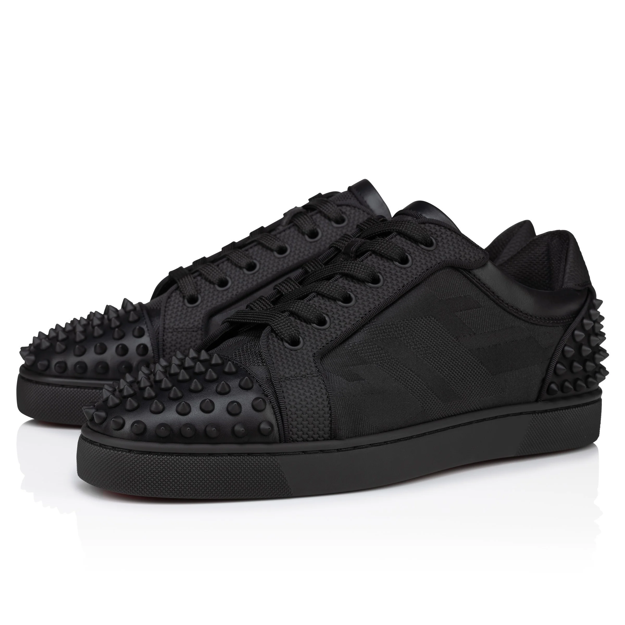 The Seavaste 2 Orlato sneaker captivates with its modern lines. Crafted from black cotton with a geometric jacquard design, it sits on a tonal rubber sole. It is distinguished by its signature Maison Christian Louboutin mat black spikes. Product information Reference: 1250208B026 Color: Black Material: Cotton