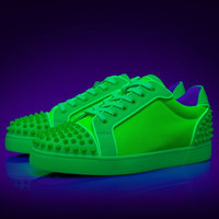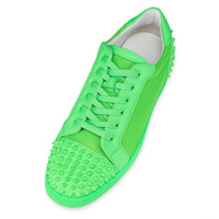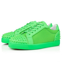 The stunning Seavaste 2 echoes the lines of a timeless 1980s tennis shoe. Maison Christian Louboutin dresses this sneaker in a striking array of modern fabrics and details. This model showcases Resille Tough mesh fabric on the quarters framed with grained calf leather in fluo green. Tonal matte spikes on the toe and heel add an edgy feel to this sophisticated low-top. Product information Material: Calf leather Color: Green Reference: 1230639E576 Collection: Summer 23