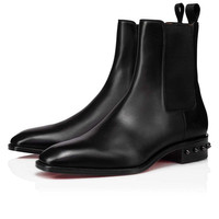 Showcasing Maison Christian Louboutin's creativity, the So Samson boot has sleek urban lines. Crafted in black calf leather, it features elastic inserts on the side and a heel tab. This model's timeless, elegant style is reflected in a row of signature spikes around the heel. Product information Material: Calf leather Color: Black Reference: 3220741BK01 Collection: Fall Winter 22