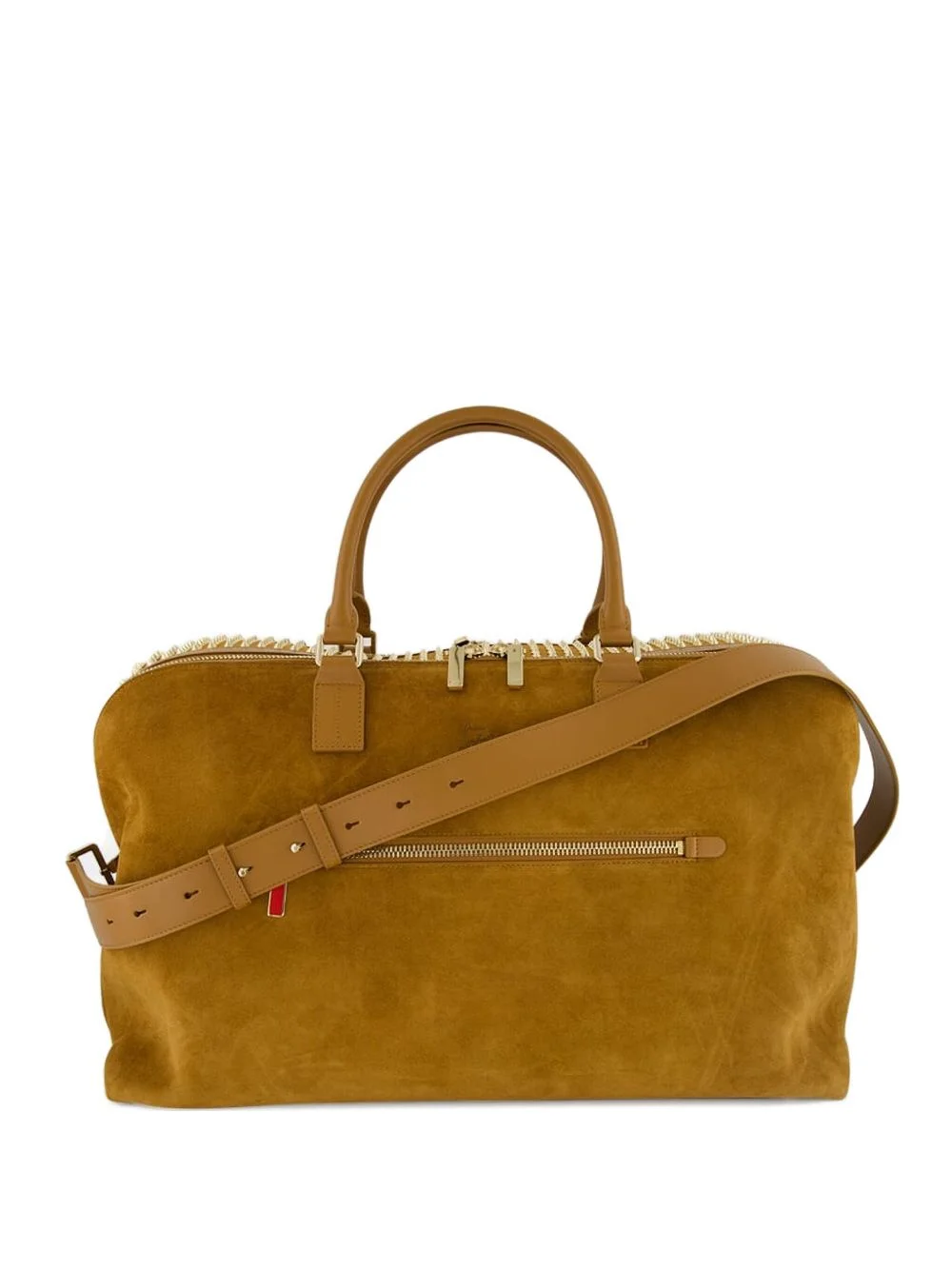 spiked travel shoulder bag Highlights - Gold - Spike embellishment - Top handle - Zip fastening - Front zip pocket - Detachable shoulder strap Made in Italy Composition Outer: Suede 100% Lining: Leather 100%