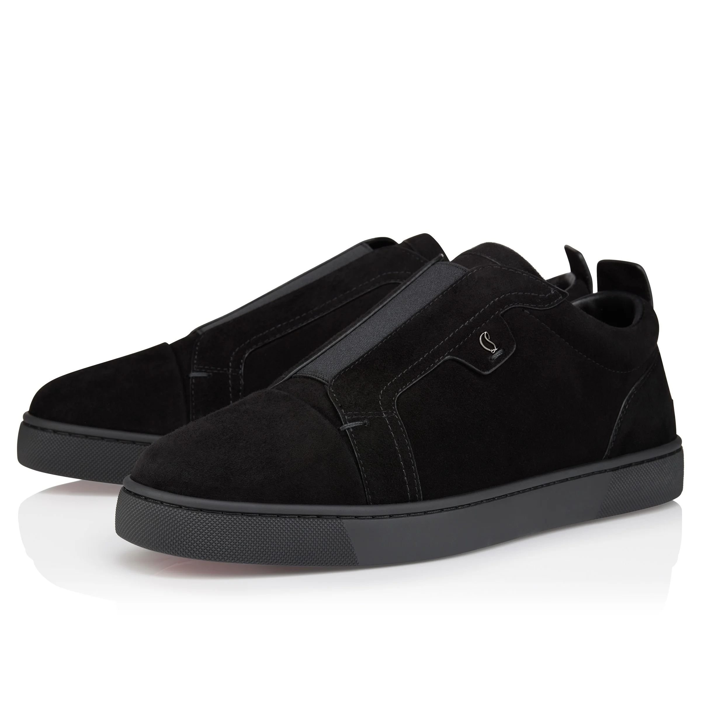 An iconic Maison Christian Louboutin sneaker, the St Louis enchants with its modern style. Crafted in black veau velours, it is set on a tonal rubber sole. A slip-on version of the iconic Louis, this sporty model with a more supple construction features an elasticated band on the upper and an elegant, slightly rounded toe. Product information Reference: 3250667BK01 Color: Black Material: Veau velours
