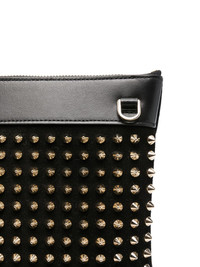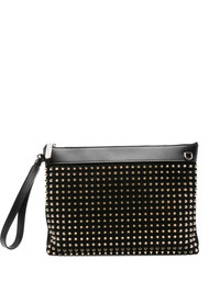 studded clutch bag Highlights - Black - Stud embellishment - Wrist strap - Zip fastening - Rectangular shape Imported Composition Outer: Calf Leather 100%, Calf Suede 100%, Metal 100% SIZE & FIT Model measurements Height 6 ft 0 in(1.84 m) Bust/Chest 37.79 in(96 cm) Hips 37 in(94 cm) Waist 31.49 in(80 cm) Measurement DEPTH 1.77 in(4.5 cm) LENGTH 9.05 in(23 cm) WIDTH 11.41 in(29 cm)
