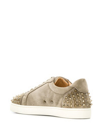 studded sneakers Green suede studded sneakers from Christian Louboutin featuring a white rubber sole, a round toe, spike stud accents and a lace fastening. Made in Italy Composition Lining: Calf Leather 100% Outer: Suede 100%, Metal 100% Sole: Rubber 100% SIZE & FIT Measurement HEEL 0.98 in(2.5 cm) Sole height 0.78 in(2 cm)