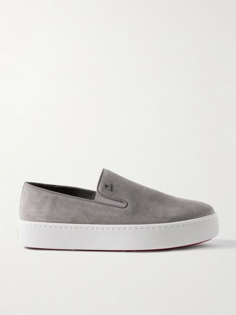 Christian Louboutin's take on minimal, clean-cut kicks, these 'Rantulow' sneakers will work just as well with jeans and a T-shirt as they will with relaxed tailoring. They're made from navy suede and grosgrain and are branding-free, save for the shoemaker's signature debossed on the iconic red soles. Size & Fit - Fits true to size. Take your normal size - European sizing Details & Care - Navy suede and grosgrain - Lace-up - Style number: 3240733