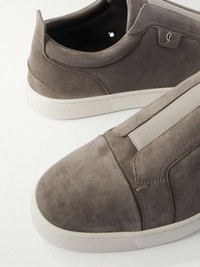 This version of Christian Louboutin's 'St Louis' sneakers swap out laces for a practical elasticated panel. They're made from suede and have breathable eyelets and the designer's famous red soles. Size & Fit - Fits true to size. Take your normal size - European sizing Details & Care - Mushroom suede (Calf) - Style number: 3250667C958