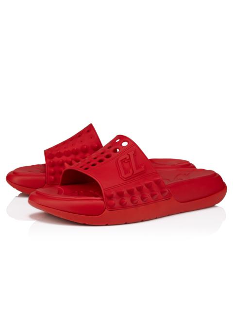 The relaxed glamour of Maison Christian Louboutin's Take It Easy summer mules come in vibrant Loubi red. The sleek flat rubber sole and wide upper strap adorned with spikes and the signature CL monogram is a contemporary design, offering both comfort and style. This model is a statement of laid-back sophistication, finished with an iconic Louboutin signature on the inner sole. Product information Material: Rubber Color: Loubi Reference: 1240945R251 Collection: Fall Winter 24
