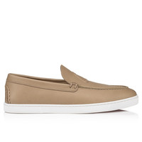 Recreating the timeless lines of the loafer, the Varsiboat sneaker showcases Maison Christian Louboutin's creativity. Crafted entirely in Saharienne beige calf leather, it has curved lines and displays the CL initials in iconic varsity font. This model features small laces on either side of the tongue. Product information Material: Calf leather Color: Beige Reference: 1240157F702 Collection: Summer 24