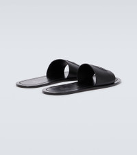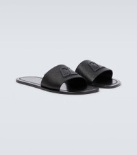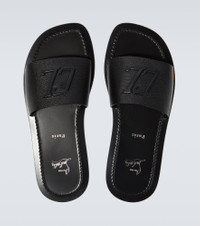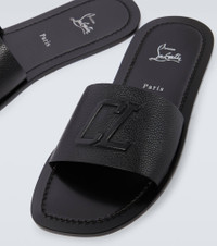 Embrace effortlessly cool styles like the Varsicool slides from Christian Louboutin. Made from grained leather, this slip-on pair has the brand's CL logo debossed on the uppers. Product Details - Toe shape: round open toe - Lining: leather - Upper: cow leather - Sole: leather insole and sole - Comes with dust bags - Designer color name: Black - Comes with a box - Made in Italy - Item number: P00752562 Size & Fit - True to size - Half sizes please take the next size up - European sizes