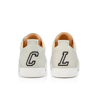 The Varsijunior sneaker has a varsity-inspired graphic style that is both sporty and elegant. A testament to Maison Christian Louboutin's creativity, it features 3-D effect CL initials on the heel counter. A modern style with a curved toe, this model combines, Goose grey gabardine with white nappa leather edging. PRODUCT INFORMATION Reference: 1230873I569 Color: Grey Material: Gabardine Collection: Summer 23