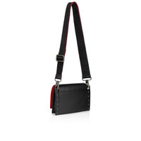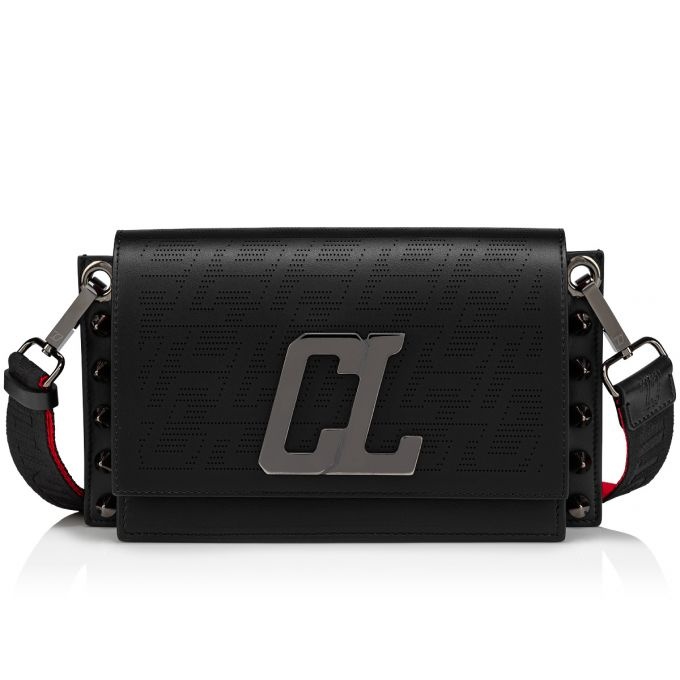 The Wallstrap messenger bag showcases Maison Louboutin's creativity and features a Happyrui CL monogram. It is crafted in soft Techno perforated black leather and has metallic eyelets and signature spikes on the sides. - Carry by hand or wear over the shoulder with the adjustable strap - 6 card slots and 2 flat pockets - Dimensions: H 130 x L 230 x W 40 mm PRODUCT INFORMATION Reference: 1235145T892 Color: BLACK/BLACK/BLACK-RED/GUN METAL Material: Calf leather Dimensions: 130mm x 230mm x 40mm Collection: Summer 23