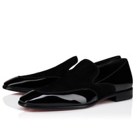 The Yaki loafer showcases Maison Christian Louboutin's creativity. Crafted from patent leather and veau velours, the fusion of textures creates a sophisticated finish. This model is shaped with a narrow silhouette and features the iconic Loubi red sole. Product information Reference: 1260505BK01 Color: Black Material: Patent calf leather and veau velours