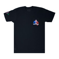The Chrome Hearts Cross Cemetery Tee is named for the multicolored cross graphics on the chest and back, layered to resemble a cemetery. The crewneck T-shirt is executed in black and features the Chrome Hearts banner logo on both sides.