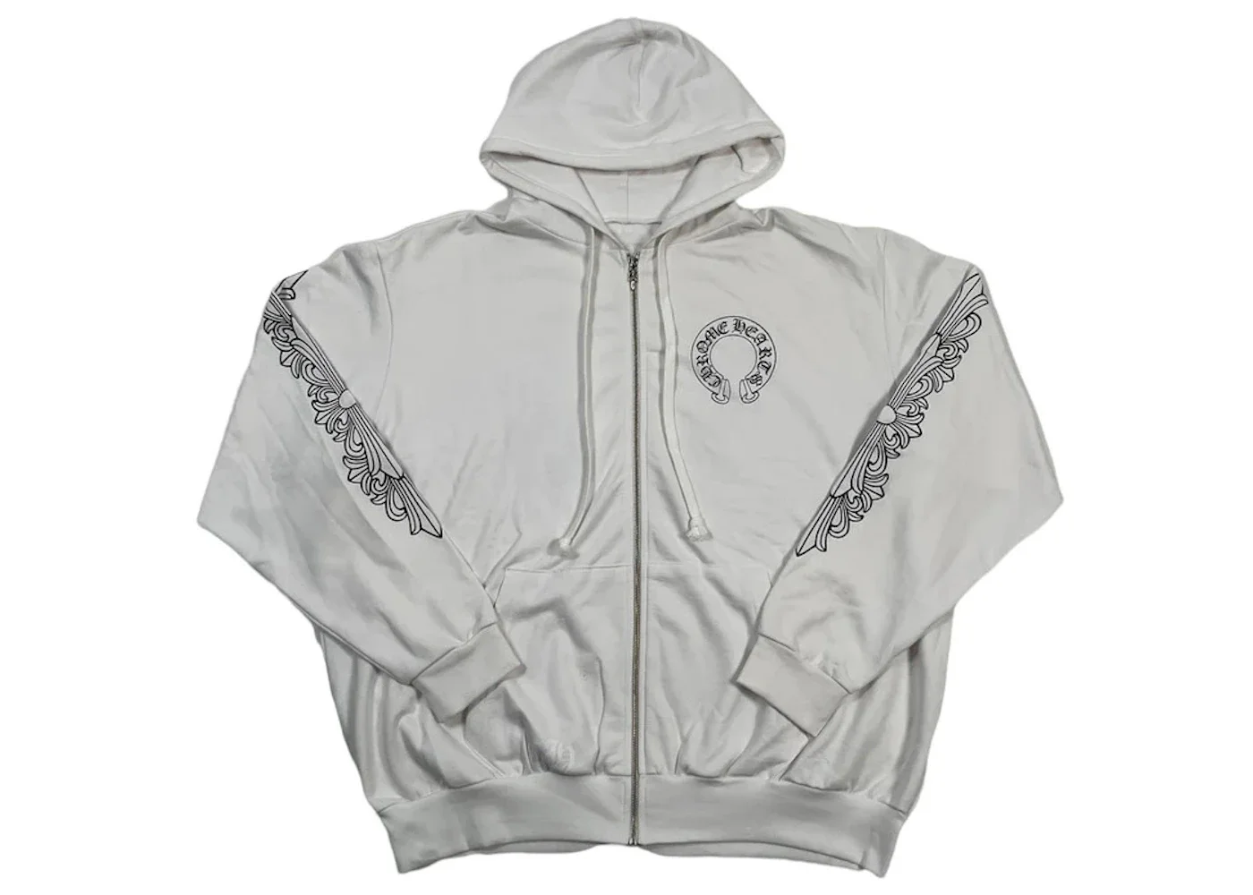 Chrome Hearts Horseshoe Floral Zip Up Hoodie White