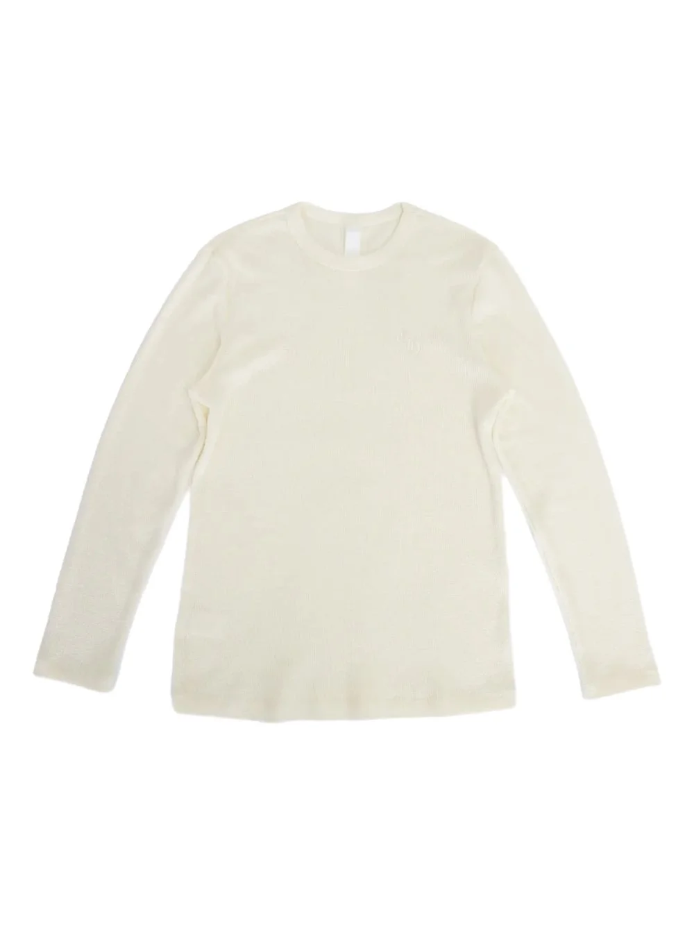 waffle embroidered sweater Highlights - White - Embroidered - Waffle texture - Crew neck - Straight hem Imported Composition Fabric 100% Washing instructions Read Manufacturer Guidelines