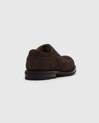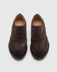 Soft, velvety suede brings casual charm to the Amersham LW. Built on the 81 last, one of our longest standing forms, its construction is loyal to the classic Oxford shoe. A slightly shorter forepart gives it a shallower fit, creating a more traditional look than our slim, elongated shapes. Full brogueing and a round toe add to its gentlemanly character. Combine its plush texture and rich detailing with wool, denim or hardy cottons. Tapered trousers will enhance its sophisticated side. A lightweight Dainite double-sole with a dotted surface provides exceptional comfort and grip. • Product code: EEC304_9VE_F0AAD_F_000000 • Full brogue lace-up oxford--- • Suede upper--- • Cotton laces--- • Blind eyelets--- • Last 104--- • Lightweight Dainite double-sole--- • Internal lining for longevity of wear--- • Handwritten shoe info to lining--- • Goodyear construction--- • Church’s crest to sock • Imported product