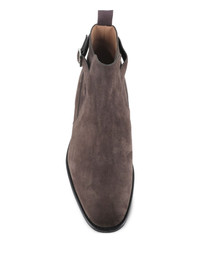 buckle-fastening suede boots Highlights - Dark brown - Buckle fastening - Ankle height - Round toe - Flat sole Composition Outer: Suede 100% Lining: Calf Leather 100% Sole: Rubber 100% SIZE & FIT Measurement HEEL 0.98 in(2.5 cm)