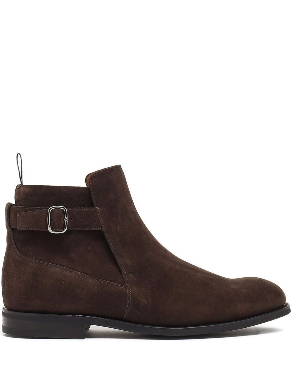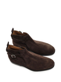buckle-strap suede boots Highlights - Brown - Suede upper - Buckle fastening strap - Ankle height - Round toe Composition Outer: Metal 100%, Calf Suede 100% Lining: Calf Leather 100% Sole: Rubber 100%