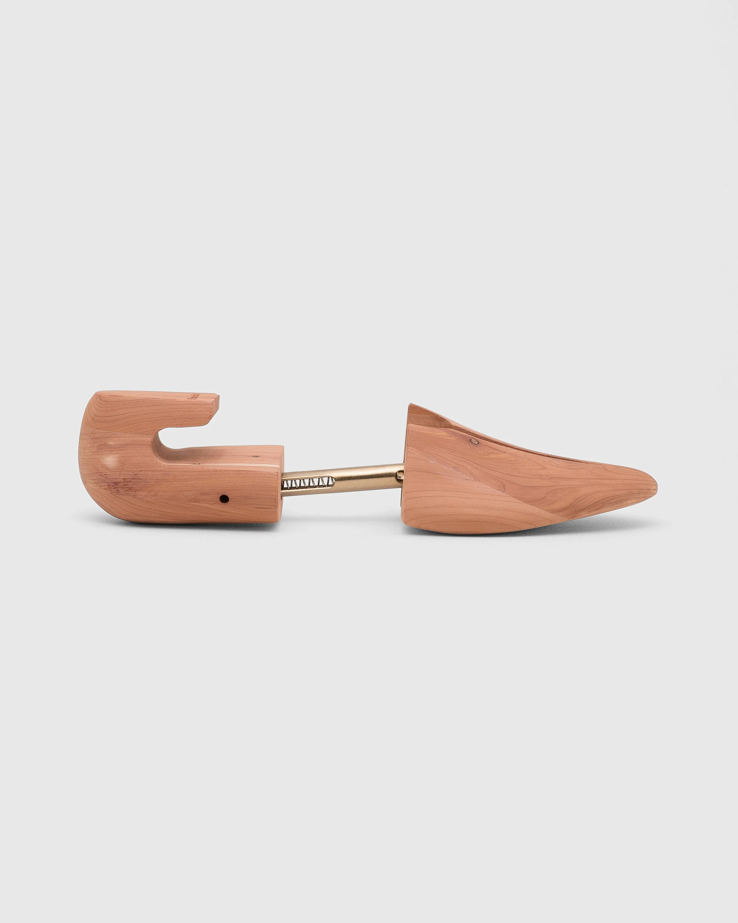 An essential item for your Church’s, shoe trees maintain form by supporting the shape whilst preventing creases forming on the upper. The Suffolk offers the additional benefit of extendable width toe box, ensuring optimum coverage inside wider fitting shoes. Crafted from cedarwood, these shoe trees not only draw away moisture from the leather, helping to dry your shoes, but lend a light cedarwood scent to the lining. ------For more information on caring for your Church’s view our Shoe Care Guide • Product code: A304SX_9XB_F0AFN • Expandable and extendable shoe tree --- • Crafted from cedarwood--- • Carved handle with logo--- • S - XL sizes available--- • Insert compressed into selected style, shoe tree will extend and expand automatically--- • Can be inserted whilst cleaning shoes to ensure even application of product--- • Sand wood to improve scent--- • Small = 5-7 / Medium = 7,5-8,5 / Large = 9-10,5 / Extra Large = 11-13 • Imported product
