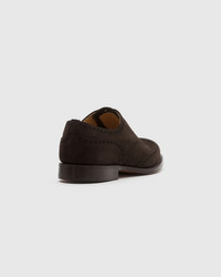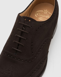Constructed on our signature 173 last, the Chetwynd is an elegant showcase of Church’s artisanal know-how. This full brogue oxford bears all the traditional markings of this iconic style, bearing perforations on the quarter lining, quarter stiffener, and toecap. Updated with modern contours, its sleek frame calls for the polish of sharp tailoring. Its rich detailing and rounded toe maintain a classic character that works well with even the most stately wool checks and cotton twills. Plush Superbuck suede creates a soft, smooth feel and a leisurely effect.------Made in Northampton, England. • Product code: EEB007_9VK_F0AEV_F_000000 • Full brogue lace-up oxford --- • Superbuck upper --- • Cotton laces--- • Blind eyelets--- • Last 173--- • Leather sole--- • Internal lining for longevity of wear--- • Goodyear construction--- • Handwritten shoe info to lining--- • Church’s crest to sock and sole • Imported product