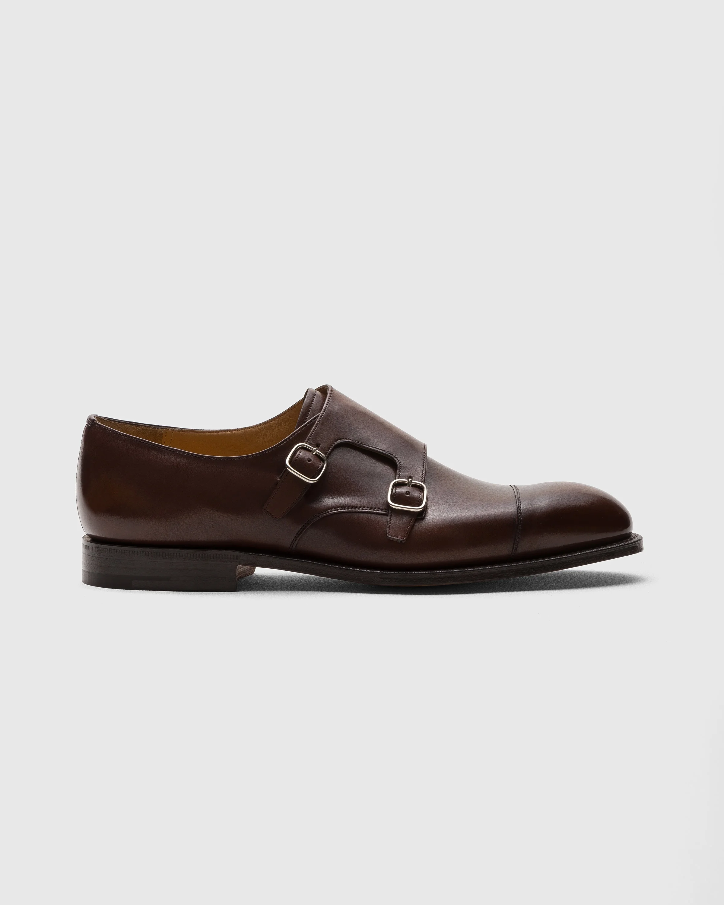 A unique aesthetic defines these formal double buckle shoes crafted from hand-bleached calfskin, that creates subtle shading on the upper, enhancing the intensity of the colour. An inherently British and dandy charm permeates the buckled Monk Strap style, initially inspired by the shoes worn by the monks during their daily duties but soon evolved towards a modern design. Suiting retro inspired ensembles and avant-garde looks alike, the style makes for a perfect combination of tradition and eclecticism. Made in Northampton, England, using the Goodyear method. • Product code: EOB097_9ADC_F0AEV_F_000000 • Monk model with double silver-colored buckles • Upper in bleached calfskin finished entirely by hand • Leather sole and rubber heel pad with Church's logo • Leather-lined model • Goodyear construction • Imported product
