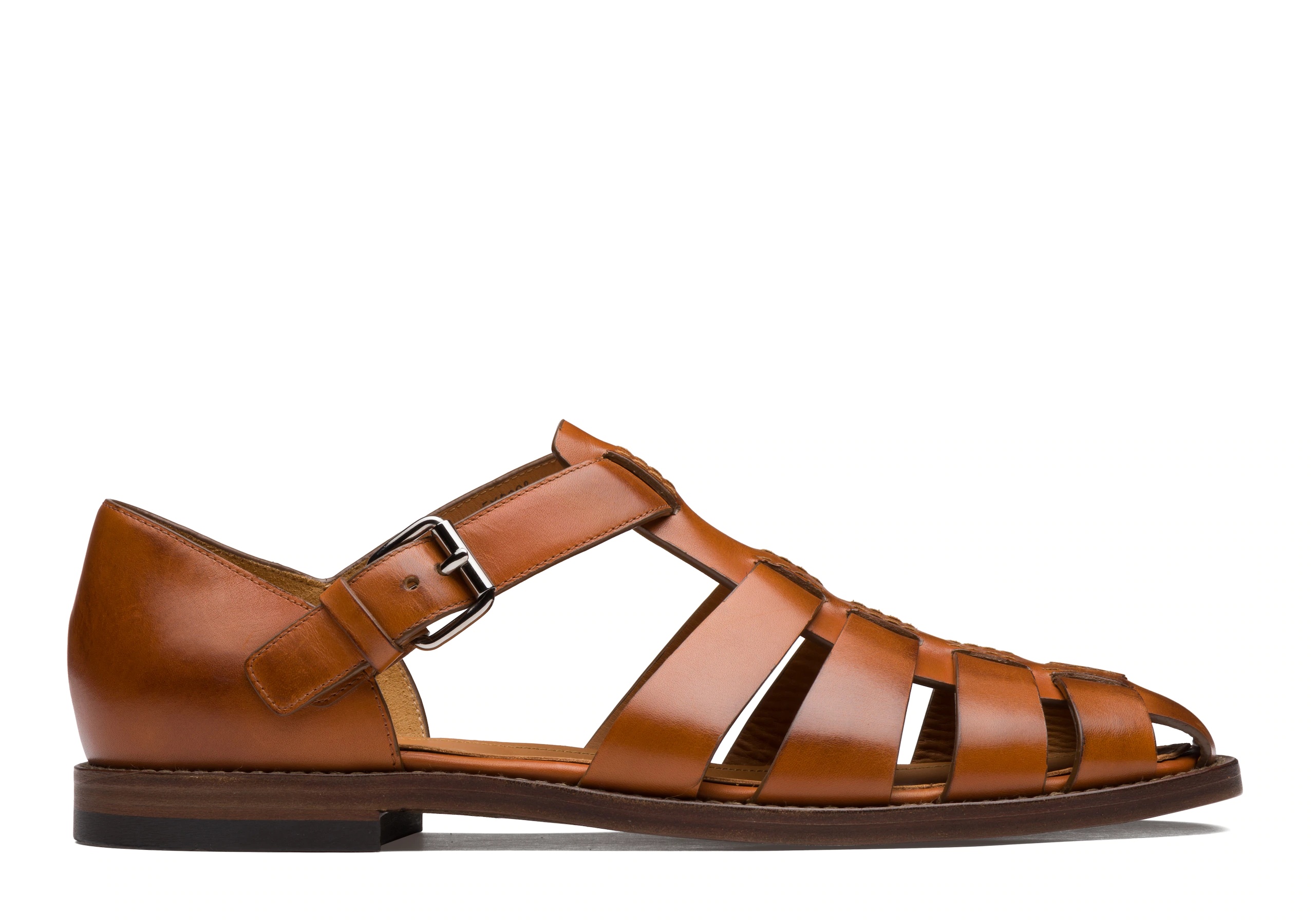 product details • Strap sandal with silver-tone buckle • Nevada leather with natural finish • Heel counter • Extra cushioning to sock • Leather sole with rubber heel • Handwritten shoe info to lining • Church’s crest to sock and sole • We advise to purchase a half size smaller than your usual size