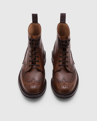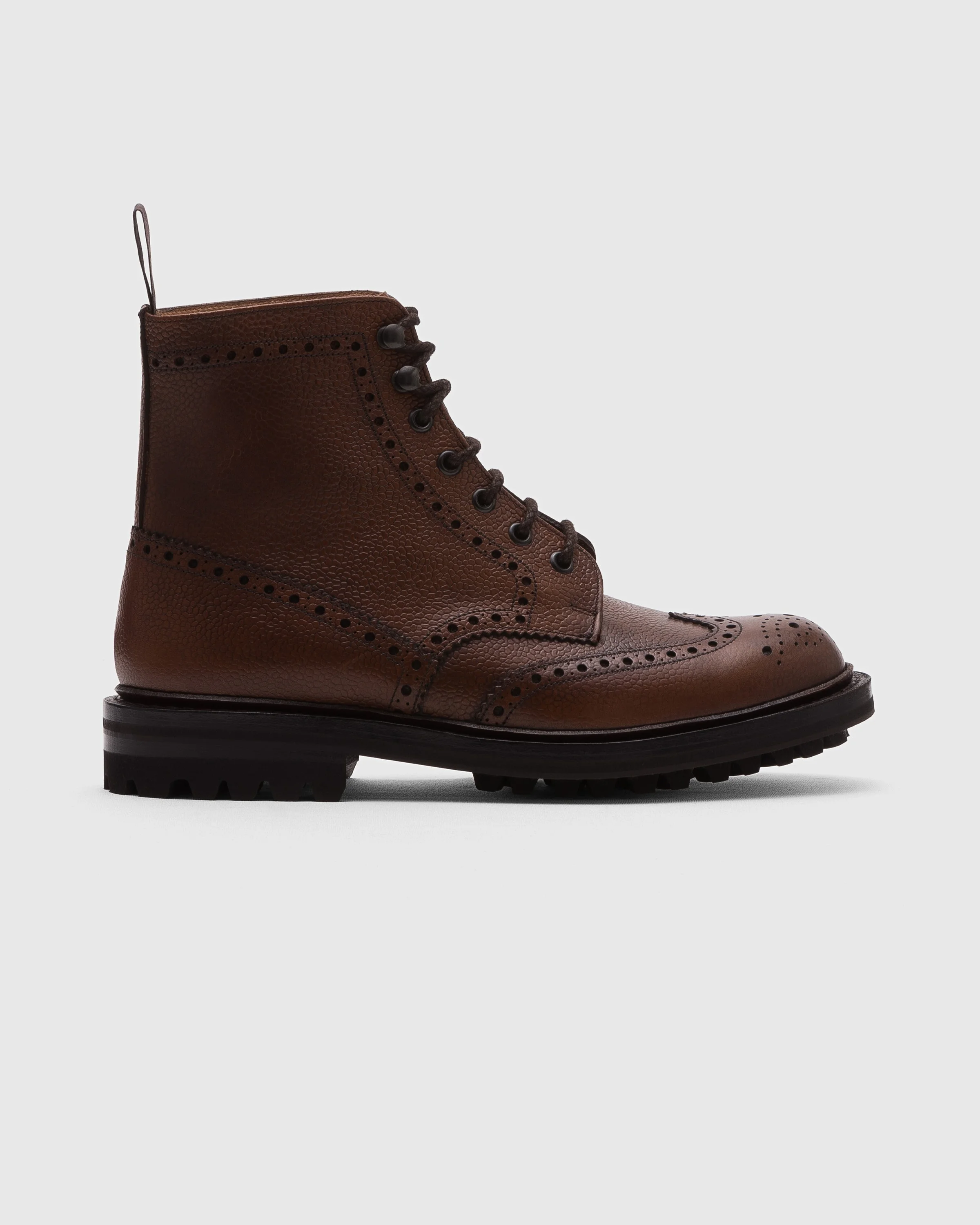 Take your Church’s to the country with the hardy yet handsome McFarlane LW. Crafted from hard-wearing waxed highland grain leather and finished with traditional brogueing, this lace up derby boot boasts dual city-country appeal. It’s distinctive chunky lightweight commando rubber sole is inset, making it invisible from the profile, while further weather resistant features such as the storm welt are also hidden in the sleek, intelligent design. A multi-purpose boot, the McFarlane is a weekend essential.------Made in Northampton, England. • Product code: ETC208_9FQ_F0AAR_F_000000 • Full brogue lace-up derby boot--- • Grain leather with natural finish--- • Cotton pull-on tab to back--- • Woven cotton laces--- • Metal eyelets and double speed eyelets to shaft--- • Last 133--- • Lightweight Commando rubber sole--- • Internal lining for longevity of wear--- • Handwritten shoe info to lining--- • Goodyear construction with storm welt • Imported product