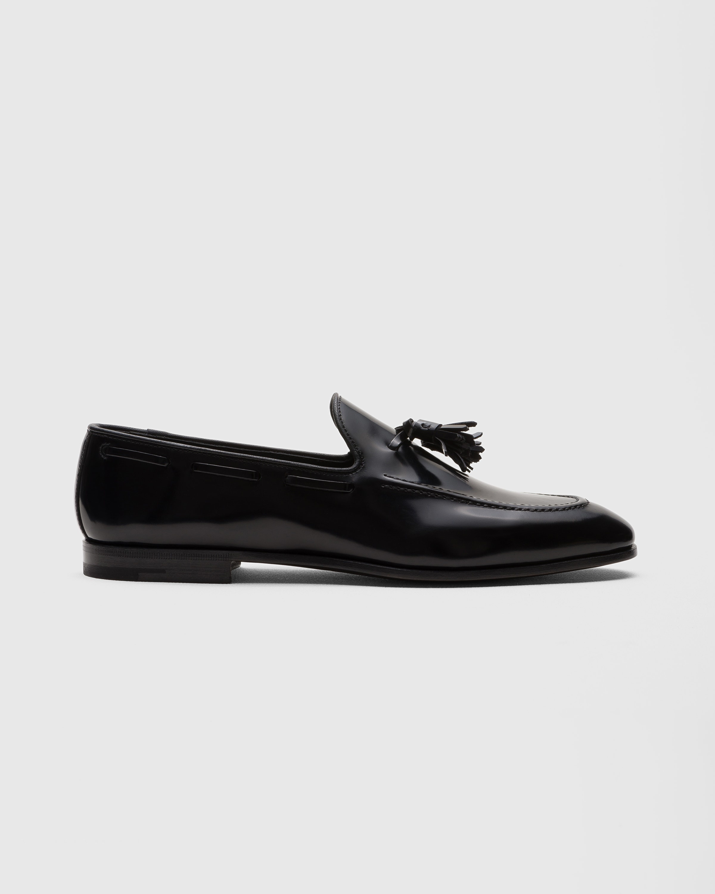 Church's artisanal excellence encapsulated in a sophisticated and current design, focusing on increased practicality. The unlined construction in incredibly soft calfskin envelops the foot like a second skin, while the upper is enriched with unique detailing, such as tassels, adding a refined touch and making the loafer fitting for both formal occasions and casual gatherings. Crafted in Northampton, England, using the reverse Goodyear method for enhanced softness and flexibility. • Product code: EDB141_9EM_F0AAB_F_000000 • Very soft loafer in calfskin polished fumé • Unlined model • Leather sole with nubuck finish and made with Goodyear reverse manufacturing, to obtain extraordinary flexibility and softness • Imported product