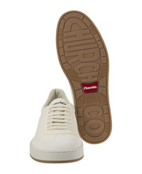 Crafted from premium leathers, the Largs trainer has an evocative aesthetic. The combination of deerskin and suede lends a touch of elegance to this versatile model. Coordinating cotton laces and a tone-on-tone rubber sole emphasise the understated style, while the bold Church's logo on the tongue recalls its sporty origins. This versatile shoe to wear on endless occasions features extra padding on the heel for maximum comfort. - Tongue with Church's logo and loop - Leather heel strap - Padded heel for extra padding - Two-tone Church's & Co. rubber sole - Leather lining for maximum durability - Church's logo on insole DESIGNER ID: EEG073 9AHW F0ALL Composition: Upper: Leather + Suede Lining: Leather Sole: Rubber Made in: Italy Color: Avorio Size and fit: - Sole Height: 3 cm Model number: EEG0739AHWF0ALL