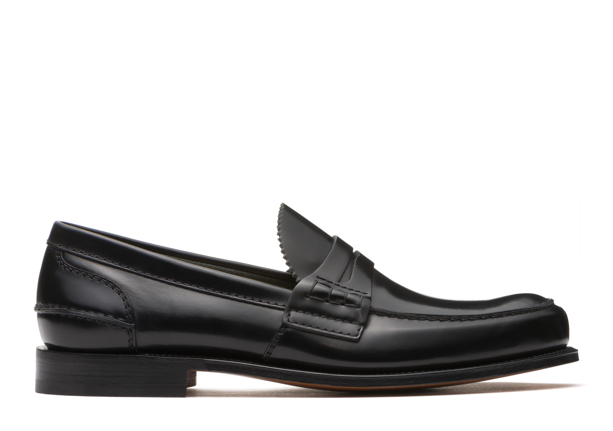 product details • Penny loafer with hand stitch detail to sides • Bookbinder leather with fumè finish • Gimping to vamp • Heel counter detailing • Folded top line for maximum comfort • Last 126 • Leather sole • Unlined for softness • Handwritten shoe info to inner vamp • Goodyear construction • Church’s crest to sock and sole